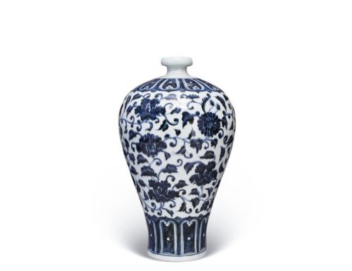 除此之外,永宣青花瓷的造型更是丰富多样,除了常见的盘、碗、梅瓶、玉壶春瓶等器型外,还涌现出一批极具创新性的新器型,如宝月瓶、无挡尊、花浇、八角烛台等。这些新器型中,不少带有浓郁的异国情调,青花瓷也成了当时对外贸易繁荣、文化交流频繁的生动体现。